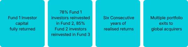 Across three funds, we've built a reputation not just for identifying exceptional companies early, but for staying with them through the hard yards of commercialisation.